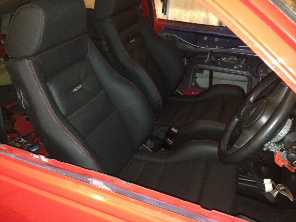 not been posting much recently as ive not had much time to work on the car but me and my dad got cracking on the interior this week so here are some pics of the front seats that my dad has done for me, ive just fitted them and thought they looked cool