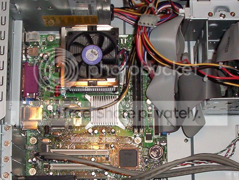 ok all i know about my pc is that its about 2 years old, 2.6GHz celeron, 512DDR RAM but upgrading it to 1 gig today, sound card and graphics card are stock at the moment but havent got a clue how upgrade friendly my motherboard is, not sure if you can tell me just by these pics? and also whats the best graphics and sound i could get for it? it might be that you cant tell me anything but im sure you could tell if its ripe for some new gear or whether id need a new motherboard.............
