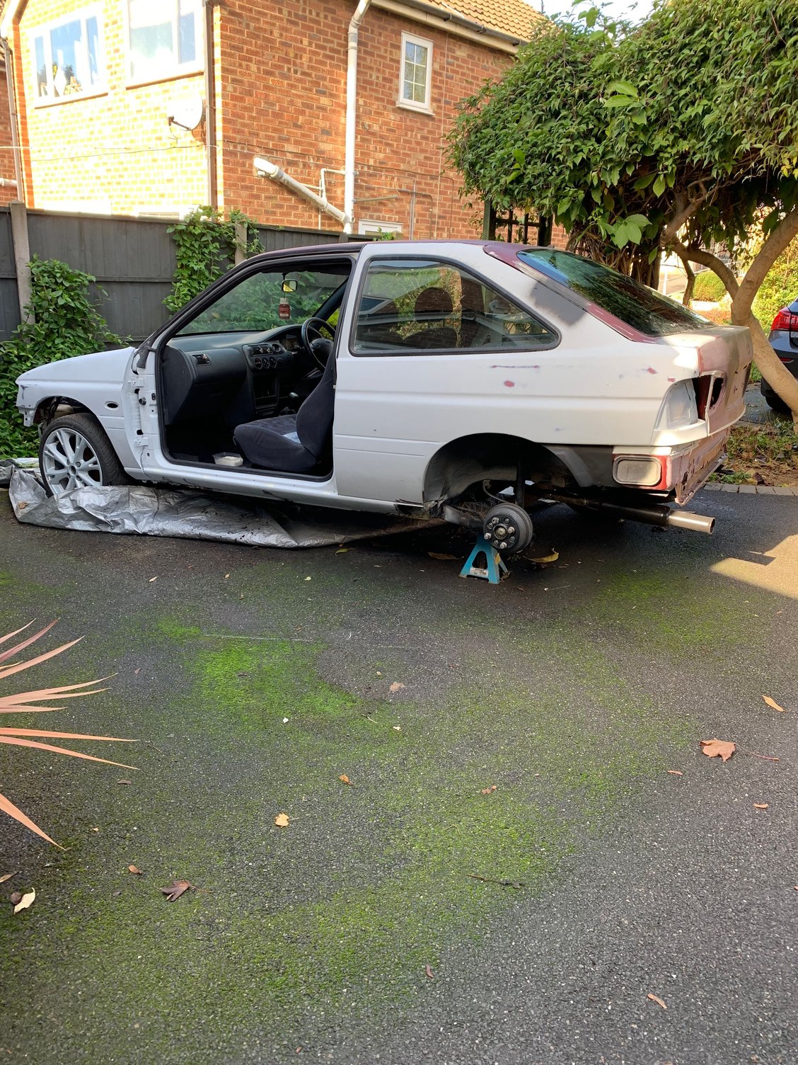 just working with my son on our escort mk6 3door show car project and I am swapping the rear drums over to the 285mm ST170 disc calipers carriers etc