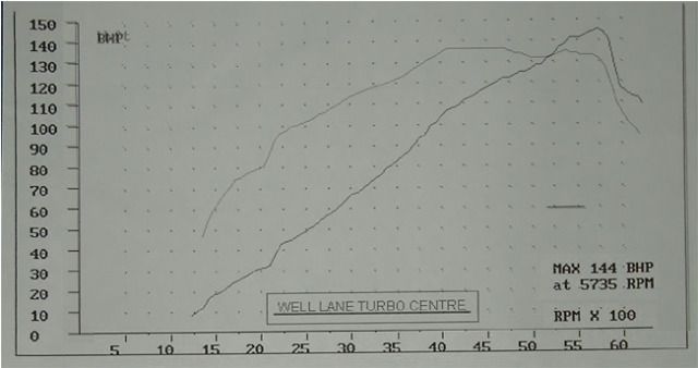 This is mine for a standard efi pinto with just the turbo added at 7psi. Only ran up to 5800rpm on this plot. Did another run to 6500rpm and got 174bhp but no print out.