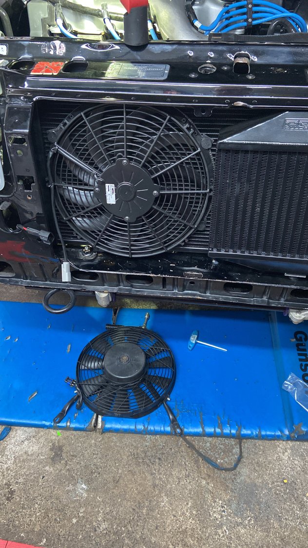 After having to replace the coolant hoses I also replaced the radiator with one from pro alloy. I would have bet my house on there being nothing wrong with my radiator as the system was always maintained/ flushed through out my ownership, however the temperature control is perfect now. I concede also that the heater matrix requires replacing as the heat from it is poor. Also replaced the fan with a Spal one. The original wasnt happy at low speeds through the PWM control. An 11 would have be perfect but my son had this 12 he bought and didnt use on his 450 hp DC2 The temperature falls almost instantly when the fan starts. Managed a few shows.