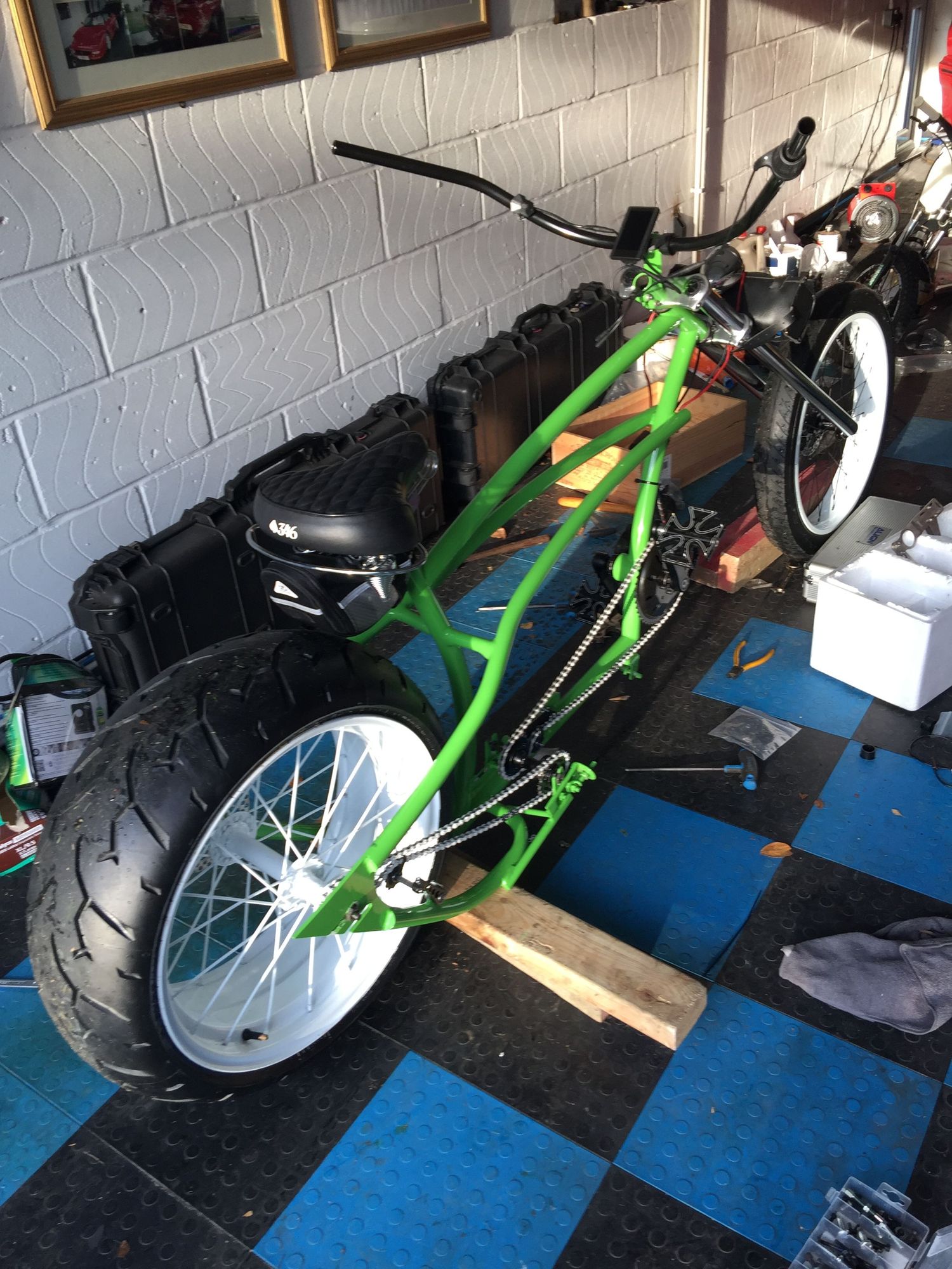 This is the 52v ebike I scratch built using a van wheel and spokes it. Both now use tesla cells (actually made by Samsung)